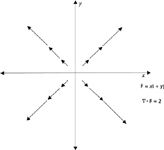 Figure 22: The divergence of the vector field F = xi + yj is 2, indicating a constant divergence, a constant spreading out, of the field at any point in the (x,y) plane.
