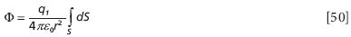 What is this integral? Well, we defined our system as a sphere, so the surface integral above is the surface area of a sphere. The surface area of a sphere is known: 4πr2 . Thus, we have