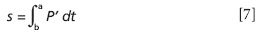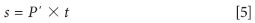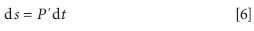This is for finite values of distance and time, and for that matter, for constant P'. (For example: total distance at 2.0 m/s for 4.0 s = 2.0 m/s × 4.0 s = 8.0 m. In this example, P' is 2.0 m/s and t is 4.0 s.) For infinitesimal values of distance and time, and for a path whose value may be a function of the variable of interest (in this case, time), the infinitesimal form is