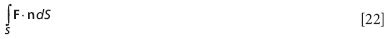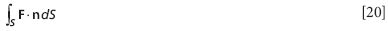 If, instead of a scalar function g we had a vector function F, the above equation gets a bit more complicated. In particular, we are interested in the effect that is normal to the surface of the vector function. Because we previously defined n as the vector normal to the surface, we'll use it again: We want the surface integral involving F•n, or