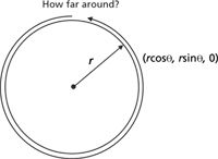 Figure 18: How far is the path around the circle? A line integral can tell us and it agrees with what basic geometry predicts (2Ïr).