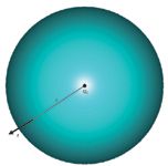 Figure 25: A charge in the center of a spherical shell with radius r has a normal unit vector equal to r, in the radial direction and with unit length, at any point on the surface of the sphere.