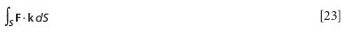 If F is a vector function, its dot product with k eliminates the i and j parts (since i•k = j•k = 0) and only the z-component of F remains. Thus, the integral above is just