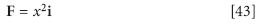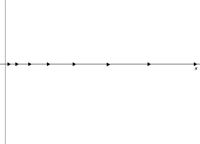 Figure 23: A nonconstant divergence is illustrated by this one-dimensional field F = x2 i whose divergence is equal to 2x. The arrowheads represent length of the vector field at values of x = 1, 2, 3, 4, and so forth. The greater the value of x, the farther apart the vectors get - that is, the greater the divergence.