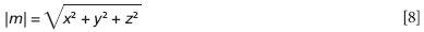 Suppose the function for the path P is a vector? For example, consider a circle C in the (x,y) plane having radius r. Its vector function is C = rcosθi + rsinθj + 0k (see Figure 18), which is a function of the variable θ, the angle from the positive x axis. What is the circumference of the circle; that is, what is the path length as θ goes from 0 to 2π, the radian measure of the central angle of a circle? According to our formulation above, we need to determine the derivative of our function. But for a vector, if we want the total length of the path, we care only about the magnitude of the vector and not its direction. Thus, we'll need to derive the change in the magnitude of the vector. We start by defining the magnitude: the magnitude |m| of a three-magnitude (or lesser) vector is the Pythagorean combination of its components