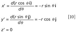 For our circle, we have the magnitude as simply the i, j, and k terms of the vector. These individual terms are also functions of θ. We have
