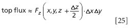 If we assume that the function Fz has some average value on that top surface, then the flux is simply that average value times the area of the surface, which we will propose is equal to Δx•Δy. We need to note, though, that the top surface isn't located at z (the center of the cube), but at z + Δz/2. Therefore, we have for the flux at the top surface