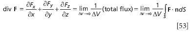 (Of course, as Δx, Δy, and Δz go to zero, so does ΔV, but this doesn't affect our end result.) The expression in the parentheses above is so useful that it is defined as the divergence of the vector function F: