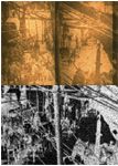 Figure 2: (above) Orbis montage video composite of mapped ares (27.5 mm à 16.5 mm) on faded black/white photo. The image is of a horse-drawn wagon on a city street. (below) Ag(L) elemental image of photo using 30 μm poly-capillary at approximately 250 DPI pixel density.