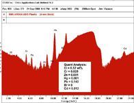 Plastic components used in electronic products are typically screened for the RoHS hazardous elements and compounds (Cd, Pb, Hg, Cr+6, certain Brominated fire retardants) using XRF. Plastics can be relatively inhomogeneous materials with respect to additive components. Average compositional analysis of trace elements in plastic is simplified by analyzing the sample with a large beam (see Figure 3).