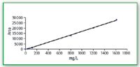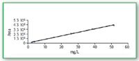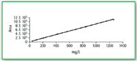 Calibration curves UV–vis detection at 190 nm: If we examine the calibration curve of fructose with UV–vis at 190 nm we see a good linearity, R2 = 0.9991 over the range 40–1400 mg/L. (Figure 5).