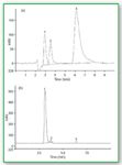 Figure 4. Two chromatograms of one injection of a standard detected at 190 nm by means of (a) UVâvis spectroscopy and (b) ELSD.