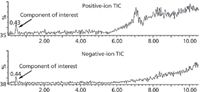 Figure 5: Positive- and negative-ion ESI total ion chromatograms of the product B extract.