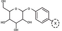 Product D was initially tested by Raman and NIR spectroscopy, which indicated a counterfeit material composed of a possible mixture of lactose, hydroxypropyl cellulose (HPC), and starch. The compound did not ionize upon LC–UV-MS analysis with either positive- or negative-ion ESI. The sample was found to dissolve completely in H2O, so a D2O solution was used to obtain structural information using NMR. The NMR analysis indicated a single, pure component. Comprehensive one-dimensional (1D) and two-dimensional (2D) NMR analysis were successful in elucidating the majority of the unknown structure as shown in Figure 11. Mass spectrometry was needed to identify the para substituent labeled as "X" in Figure 11 because it was not represented in the NMR data set. DCI was used to obtain a mass spectrum of the compound because ESI had failed in the preliminary LC–UV-MS sample analysis. The mass spectrum obtained from the DCI analysis is shown in Figure 12. The molecular formula was elucidated as C12H16O7 based on the DCI accurate-mass analysis. Coupled with the structural information obtained from the NMR analysis, the para substituent was identified as a hydroxyl (-OH) group. An internet search using the molecular formula resulted in the further identification of this compound as arbutin (Figure 13). Arbutin is used as a skin-lightening agent, generally in topical applications, and is extracted from the bearberry plant (21). Its toxicology upon oral ingestion is unknown. This case study shows another example of a counterfeit product that contains an active component whose indication is misaligned with the intended disease area of the authentic product.