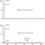 Figure 6: Positive- and negative-ion mass spectra of the component at tR = 0.44 min from the