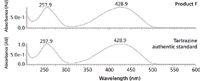Figure 18: UV spectra of primary component in product F and an authentic sample of tartrazine (430 nm).