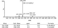 Positive-ion DCI with methane is used for the characterization of components that do not ionize adequately by LC–MS with ESI. The analysis is performed on a Waters GCT Premier system equipped with a DCI probe for sample introduction. The instrument is controlled using MassLynx v 4.1. The instrument is operated at a resolution of 7000 (FWHM) and the data is acquired over a range from m/z 50–700. Heptacosa (perfluorotri-n-butylamine) is introduced as an internal reference for accurate-mass measurement.