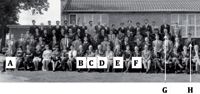 Figure 7: Attendees at the EUCHEM Conference on Far-Infrared Spectroscopy, held at Culham College, Oxford in September 1966. Among the names that may still be recognized today are (A) Ellis Lippincott, (B) Foil Miller, (C) Richard C. "Dick" Lord, (D) Ludwig Genzel, (E) Harold "Tommy" Thompson, (F) Alastair Gebbie, (G) Bill Fateley, and (H) Peter Griffiths.
