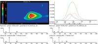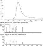 The spectrum shown in Figure 3 was separated with fragments assigned to two analytes through chemical reasoning, but the absolute coelution prevented mathematical deconvolution from isolating each individual spectrum. For other coeluted analytes with a larger degree of chromatographic separation, mathematical deconvolution provided an additional level of resolving power that isolated even more individual analytes. Even with the increased peak capacity of GC×GC, coelutions still occurred and the software's deconvolution feature mathematically resolved some of these overlapped analytes. Figure 6 shows that what appeared to be a single peak in the GC×GC contour plot was two analytes separated by 60 ms at their peak apexes in the second dimension. The software identified unique masses to define chromatographic shape, shown in Figure 6b, and isolated mass spectra for determining analyte identity (Figures 6c and 6d). These two analytes were identified as 1-penten-3-one and 1-penten-3-ol with similarity matches to the library spectra of 824 and 861, respectively.