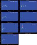 Because food fraud can involve multiple edible oil varieties, a collection of representative edible oil samples were characterized and compared to investigate adulteration. Three extra virgin olive oil samples and one of each olive, peanut, grapeseed, and vegetable oils were prepared and analyzed with these methods. Example chromatograms for each sample are shown in Figure 1 and many similarities and differences were noted. The visually distinct two-dimensional chromatograms that are generated with GC×GC allowed for rapid preliminary comparisons of the samples.