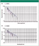It is important to recognize that because the relevant x-axis units in a Raman spectrum are cm-1, the dispersion is wavelength dependent, which will be illustrated in Figures 4a and 4b. Figures 4a and 4b, respectively, show dispersion curves for the same gratings in a 300-mm focal length spectrograph, in terms of nm and cm-1.