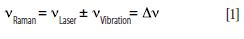 It is not the purpose of this article to derive the equations that determine the conversion, but only to indicate to the new user the origin of the "magic" inside the software that enables the spectral "image" on the camera to be converted to a spectrum, that is, a plot of intensity (counts or counts/s) versus Raman shift (cm-1). The physical quantities determining the separation on the camera of two wavelengths will be the incident angle of the light on the grating, the diffracted angles, as determined by these equations, and the focal length of the focusing element (2). When a Raman instrument is designed, the spectral dispersion at a given wavelength is selected, and then the angles and focal length are calculated to produce the desired result. In addition, there is optical software that enables asymmetrizing the geometry so that the images are kept as tight as possible on the surface of the detector, which, of course, is flat.