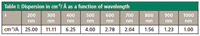 Table I: Dispersion in cm-1/Ã as a function of wavelength