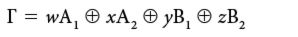 where w, x, y, and z represent the number of each irreducible representation in the reducible one, and the symbol "⊕" means "direct sum." A direct sum is the sum of the characters of each symmetry element to generate a new set of characters. Characters from different symmetry elements are never combined. Separating a reducible representation into its irreducible counterparts is called, naturally, reducing the reducible representation.