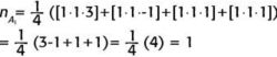 Let us see how the GOT works by reducing the reducible representation above. To determine how many times A1 appears in our reducible representation, we combine the characters of A1 with the characters from the reducible representation, multiply by the number of symmetry elements in each class (which, from Figure 2, is just 1 for each symmetry element), and sum over all classes of symmetry elements before dividing by the order of the group, which is 4: