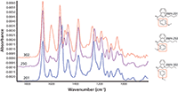 Figure 2 shows GC–IR results for three compounds that illustrate spectral differences among highly similar isomers. This ability to identify isomers is a major advantage of both IR and Raman spectroscopy.