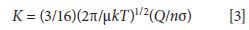 Another relevant equation must incorporate the charge on the ion, its collision cross section s, and the temperature and pressure of the drift gas. All of these variables are brought together in the Mason equation (3), which appears in one form as