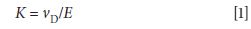 The relevant equation in simple IMS is that for ion mobility, given as K. Under a fixed set of conditions the ion mobility is the ion's drift velocity (vD) divided by the applied electric field E: