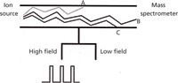 In a development originally known as transverse field ion mobility mass spectrometry, the movement of the ionic species may not be through a drift tube of specified length, but between and through two parallel electrodes (Figure 3). The ions are injected in a pulse at one end of the device, and the drift gas carries the ions from the source to the detector, as contrasted with "opposing" the flow. The electric fields applied to the electrodes control which ions traverse the device to make it through to the detector. FAIMS devices operate at atmospheric pressure, and like IMS instruments, act as an ion separation device. Conditions are set (the combination of low field and high field potentials applied to the electrode, and drift gas velocity) so that certain ions get through, and others that intersect with the electrodes do not. As such, the device can serve as a specific detector (if the ion mobility can be directly and specifically related to the compound of interest), or as a selective source for another following device such as a mass spectrometer. If the characteristics of the targeted analyte of interest under a specified set of conditions are known, then the FAIMS instrument becomes a dedicated sensor of sorts. Miniaturized versions serve very specific applications in targeted compound detection, and a broad variety of instrumental designs have been explored.