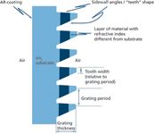 Furthermore, dielectric materials with refractive indices different than the glass substrate can be added to the structure. Figure 4 shows the various parameters that can be used to optimize the grating's diffraction efficiency.