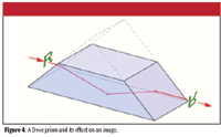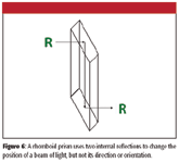 A rhomboid prism (Figure 6) changes the position of the incoming light but not the direction or orientation of the image. It, too, depends upon internal reflection.