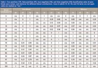 Table I: True positives (TP), false positives (FP), true negatives (TN), and false negatives (FN) classification rates of pure blood, pure semen, and mixtures for different blood contributions. Cases in which TP, FP, TN, and FN terms are not applicable are marked as "n/a."