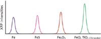 Figure 6: Mineralogical effect on iron intensities from minerals prepared as pressed powders having the same particle size and concentration of iron.