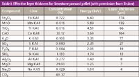 Table I: Effective layer thickness for limestone pressed pellet (with permission from Bruker).