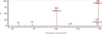 Deprotonation of HMTBA results in the pseudomolecular anion m/z 149, which can be readily monitored with ESI-MS operating in the negative ion mode. The negative ion ESI-MS spectrum of HMTBA is shown in Figure 6. The spectrum shows the presence of only one dominant peak at m/z 149. With selected ion monitoring, the LOQ for HMTBA in organic- and salt-free basified water–methanol solutions was found to be 1.0 ng/mL.