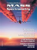 A comparison of the reversed-phase LC, ESI-MS, and ESI-MS-MS approaches for HMTBA quantification in the two matrices is given in Table I. Results show that better sensitivity of the ESI–MS and ESI-MS-MS approaches gave superior results compared to reversed-phase LC for both matrices. HMTBA quantification in sea water samples was readily carried out with direct infusion with the ESI-MS method. However, because of matrix interferences, the ESI-MS-based approach was not satisfactory for the analysis of serum samples.