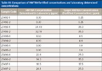 Table III: Comparison of HMTBA-fortified concentrations and laboratory determined concentrations