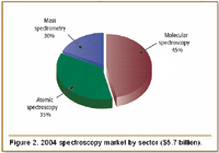 Figure 2. 2004 spectroscopy market by sector ($5.7 billion).