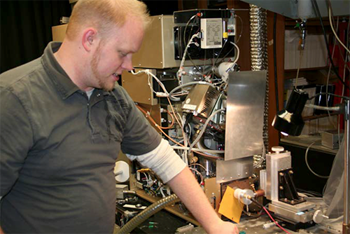 Shelley at work near his mass spectrometer during his early graduate work at Indiana University (photo courtesy of Gary M. Hieftje).