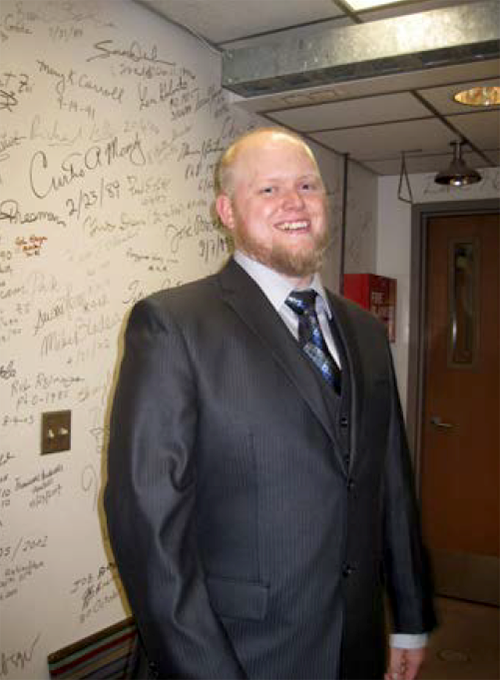 Shelley at Indiana University following his PhD defense in May 2011. Shelley becomes part of a distinguished IU chemistry academic tree https://academictree.org/chemistry/tree.php?pid=55000 and lends his signature to the famous Hieftje Laboratory signature wall (photo courtesy of Gary M. Hieftje).