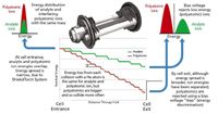 As has been noted in previous publications (16,17), this mode of interference removal relies upon good control of ion energies to permit effective separation of the analyte and interferences. The removal of polyatomic interferences by kinetic energy discrimination is illustrated in Figure 1, which shows how analytes and polyatomic ions can be separated due to their differential rates of collision, since the polyatomic (or molecular) ions have a larger ionic cross section than the analyte ion of the same mass, and therefore collide more frequently with the cell gas. The efficiency of this separation is improved when the ions enter the cell with a narrow initial ion energy spread.