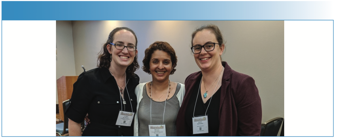 Former Van Duyne group postdocs reunite at SERMACS 2019. L to R: Lauren Buchanan, Bhavya Sharma, and Renee Frontiera, October 2019, Savannah, Georgia.