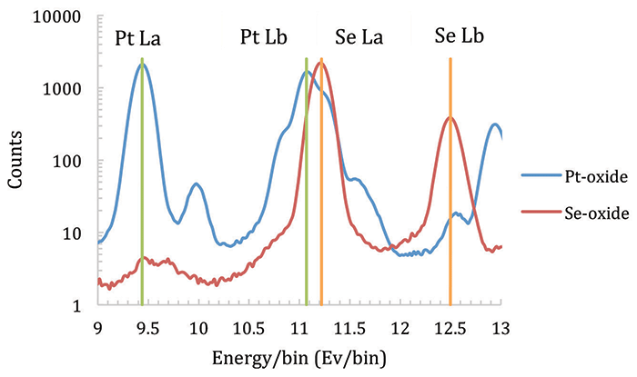 Figure 5: Overlap of XRF for the oxides of platinum (Pt) and selenium (Se).