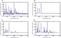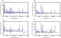 Figure 6: Baseline-treated Raman spectra of an authentic Plavix tablet in its (a) coated and (b) uncoated forms and a counterfeit Plavix tablet in its (c) coated and (d) uncoated forms measured by the laboratory-based instrument.