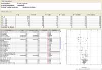 Figure 3: The results of a t-test between NRBC and IRBC samples is displayed as a volcano plot, revealing the fold-change in abundance as well as p-value of significance for each mass entity in a list of compounds that were "identified" using the ID browser. The p-value, fold change, and directionality of regulation are also summarized in a table. For example, arginine levels appear to be significantly reduced or absent in IRBC based on the result of log2 transformation of the abundances, expressed as a ratio.