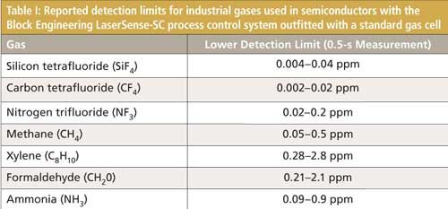 Although the typical FT-IR system still has a much larger range (for example, 3500 cm-1 or more), the low comparative brightness of the source, larger size, and lower resolution all limit these traditional devices for more-portable or industrial field use. Dedicated gas detection systems for particular applications are being realized. Table I, for example, shows detection limits of the LaserSense-SC semiconductor process control system (Block Engineering) with a 6-m pathlength cell. Applications to gas sensing in energy exploration and production, refining, workplace safety, and industrial processes are high on the list of applications.